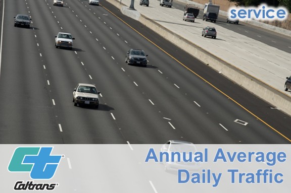 Description: Annual average daily traffic is the total volume for the year divided by 365 days. The traffic count year is from October 1st through September 30th. Very few locations in California are actually counted continuously. Traffic Counting is generally performed by electronic counting instruments moved from location throughout the State in a program of continuous traffic count sampling. The resulting counts are adjusted to an estimate of annual average daily traffic by compensating for seasonal influence, weekly variation and other variables which may be present. Annual ADT is necessary for presenting a statewide picture of traffic flow, evaluating traffic trends, computing accident rates. planning and designing highways and other purposes.Traffic Census Program Page